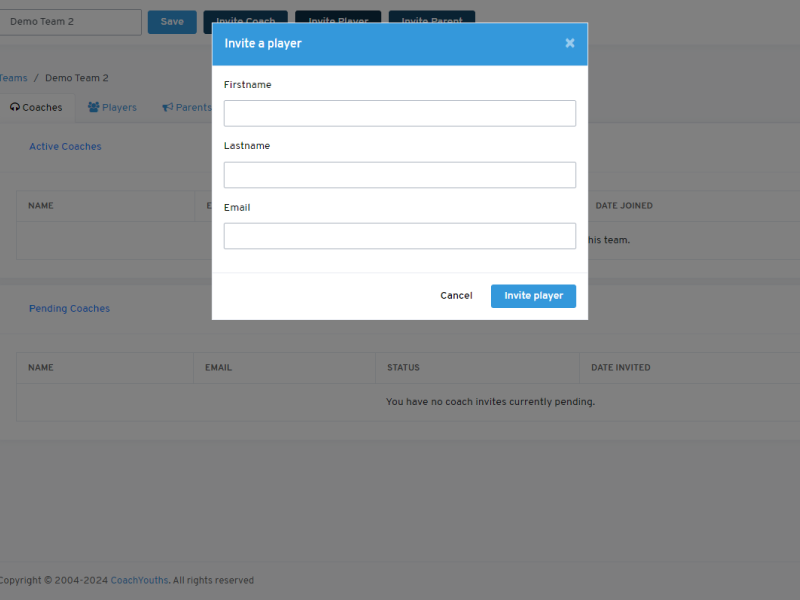 Invite UNLIMITED players and parents.