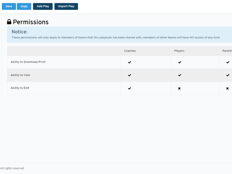 You can also enable access for your players to generate PDF files of any shared playbooks that they can download and print for offline studying, you will have complete control over this as well.